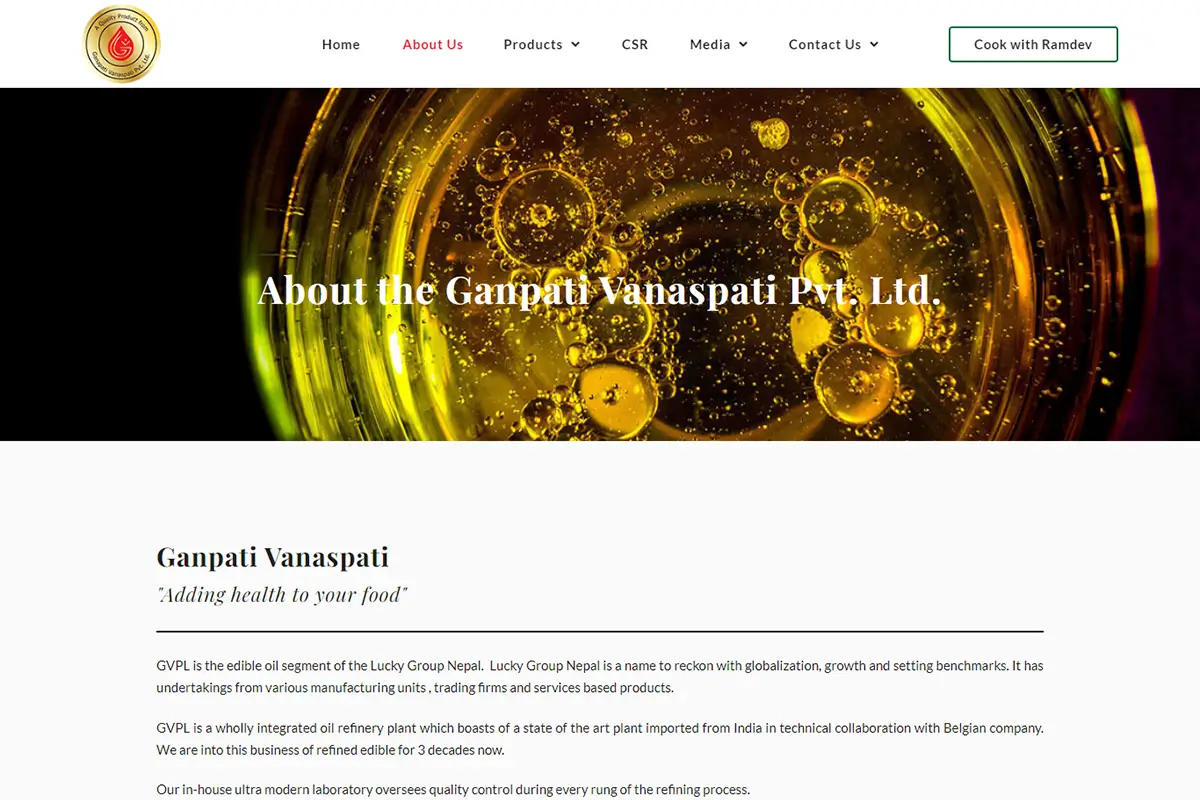 Ganpati Vanaspati GVPL is the edible oil segment of the Lucky Group Nepal. Lucky Group Nepal is a name to reckon with globalization, growth and setting benchmarks. It has undertakings from various manufacturing units , trading firms and services based products. Want to know more? You can visit website www.ganpativanaspati.com Date: July 14, 2020 Client: Ganpati Vanaspati Pvt. Ltd. Services...